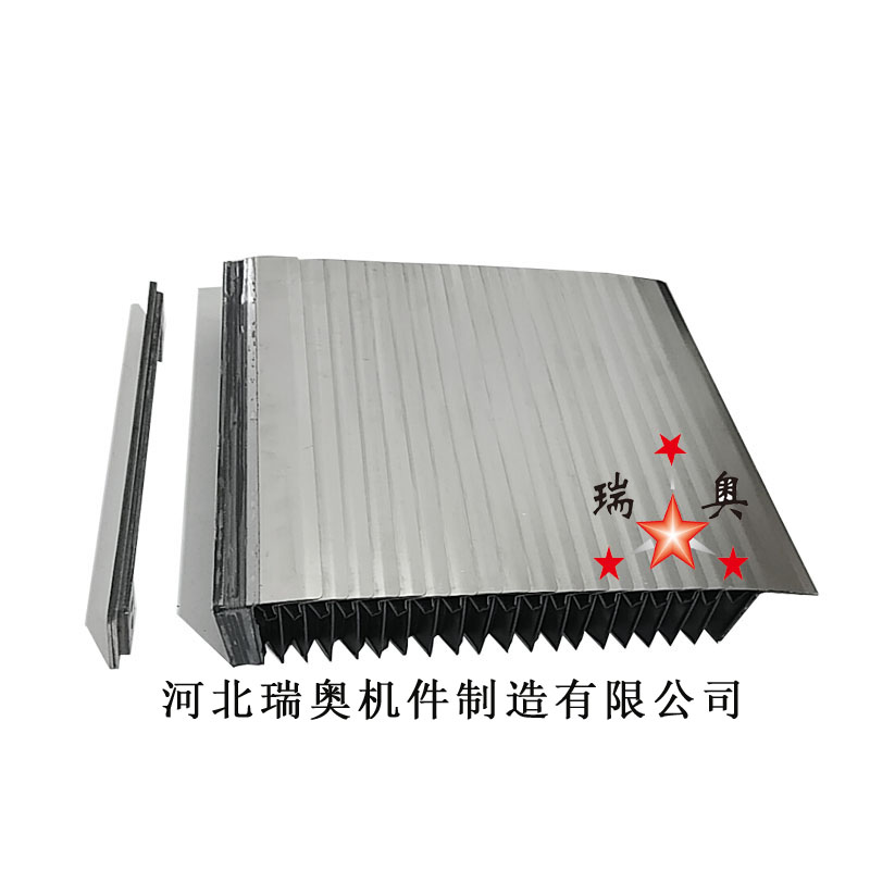 按照用戶要求尺寸制作一個(gè)相同規(guī)格的風(fēng)琴式機(jī)床導(dǎo)軌防護(hù)罩,然后在外表加裝不銹鋼片制作而成。因此盔甲式防護(hù)罩擁有風(fēng)琴式防護(hù)罩的很多優(yōu)點(diǎn)。