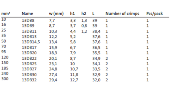 用于銅端子的集成式模具對DUAL,KRF / KSF類型120mm2,六角形壓接。不需要模座。在DV1300和PVX1300中使用。2卷邊。