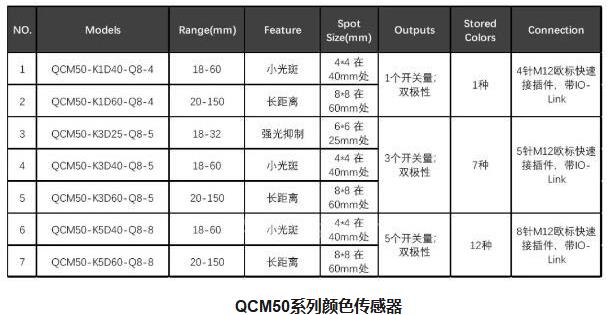 ● 150 mm 長量程的QCM50系列傳感器解決了更多之前需要花費昂貴成本的顏色傳感器才能解決的應用;